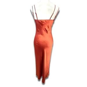Chic orange midi dress by All Saints. Features a sleek slip design. Perfect for stylish outings.