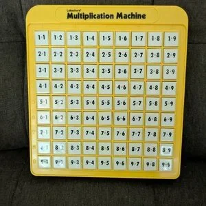 Set of four yellow math learning boards. Includes addition, subtraction, multiplication, and division machines.