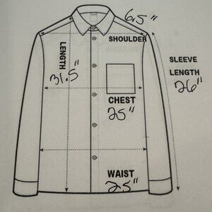 Measurements: Picture is attached! Shoulder 6.5", Chest 25", Sleeve Length 26", Length 31.5", Waist 25"
