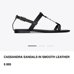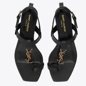 Elegant black sandals with signature YSL logo. Smooth leather finish. Ideal for any occasion.