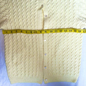 Vintage Women’s XS LS Handmade Cable Knit Button Up Sweater Pale Yellow
