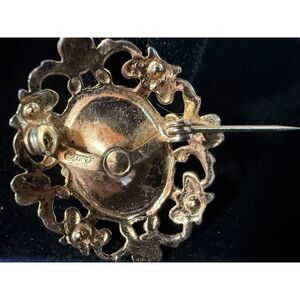 Materials: Molded resin/plastic cameo, gold-tone metal, clear rhinestones