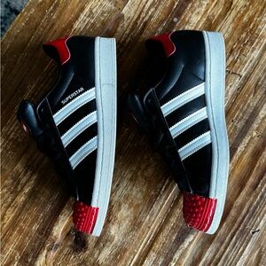 Adidas x LEGO Big Kids Superstar sneakers in black/red size 6.5 fits women size 8