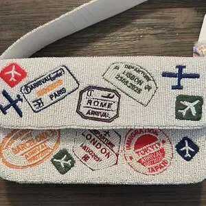Super cute white beaded passport stamp bag from TJ Maxx. Brand new with tags! Fun for your next vacation!