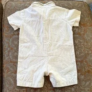 Adorable Disney romper with Tigger design. Soft cream fabric and button-up style. Perfect for fun adventures.