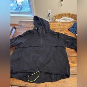 Lululemon Black Hooded 1/2 Zip Windbreaker with Neon Accents. EUC. Size M/L.