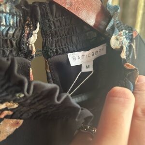 Baltic Born Navy Floral Maxi Dress - High Neck, Ruffle Hem, Gauzy Sleeves