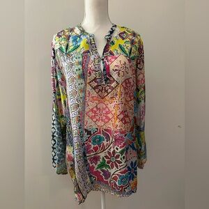 Johnny Was Belinda Silk Tunic XL NWOT multi print silk