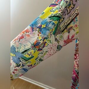 Johnny Was Belinda ruining in vibrant multi color print silk . Button placket closure, long sleeves. New without tags, never worn.