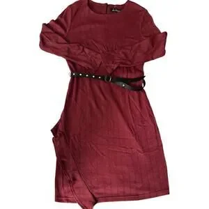 Sam Edelman Maroon, Belted, Lined, Long Sleeve Mini Dress- 6