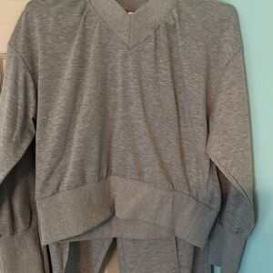 Gray V Neck Sweatshirt and Pants Set. Med. With Pockets and Wide Legs