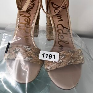 Sam Edelman Yoana Heel Sandals Nude Woven Trim ankle strap Leather