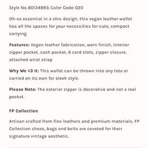Free people Tan Wallet. Website description in photos. Very good condition.