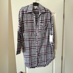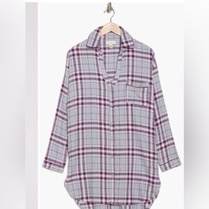 Ted Baker London Plaid Button-Up Sleep Shirt - Purple and Gray Women’s Size M