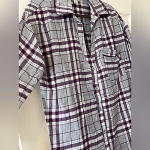 Stay cozy in this stylish plaid button-up sleep shirt. Featuring a classic purple and gray design, it's perfect for a comfortable night's sleep. Designer Ted Baker London. Measurements in photos. Smoke free home. Women’s size medium