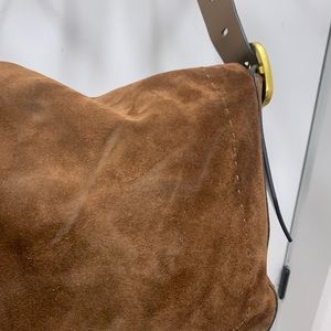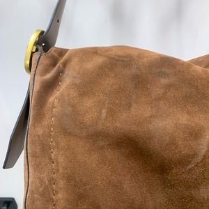Tory Burch Sawyer Needlepoint Suede Shoulder Bag Brown Multicolored Florals