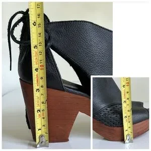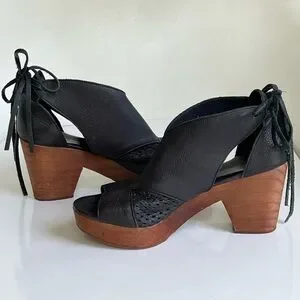 Free People Black Leather Mules with Brown Heels