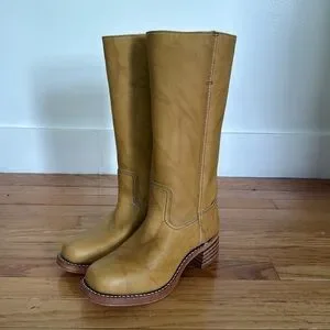 Brand new, never worn Frye Campus Boots in Banana. These were a floor model so have some scuffs on the bottom, but have never been worn outside (see photos). Size 8.5.