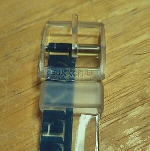 Experience the Swatch watch with a clear case and visible mechanics. Wrist Band Emblazzend with Daimler Chrysler name.