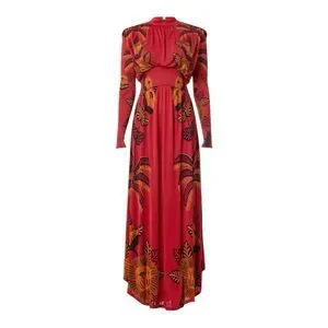 Farm Rio Living Bloom Maxi Dress Long Sleeve Red Jersey Size Large