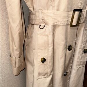 London Fog Khaki Double Breasted Belted Removable Hood Trench Coat Women’s Sz M