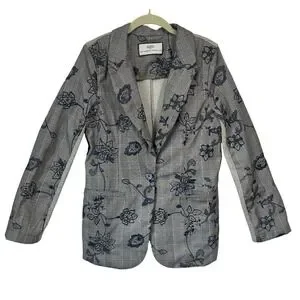 Women's Hilary Radley Plaid Floral Embroidery Navy Gray Knit Blazer Casual