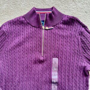 Tommy Hilfiger Women's Cotton Quarter Zip Cable Knit Sweater - Aubergine Color