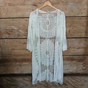 This sheer kimono-style robe is perfect as a beach cover-up or a layering piece for a Boho look.