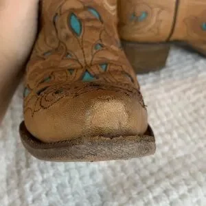 Corral cowgirl boots sz 8 tan and turquoise western country coastal