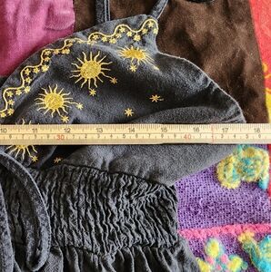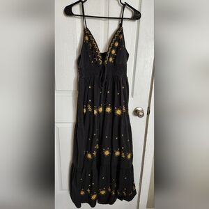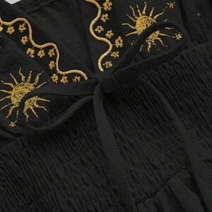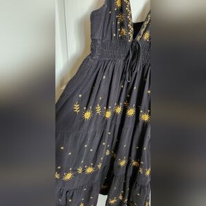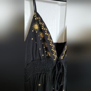 Large Medium Black and Gold Embroidered Women's Dress Celestial Sun Star Maxi