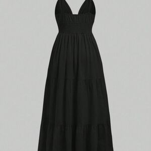 Elegant black dress with stunning gold embroidery. Perfect for any occasion. There are no tags in this, so please see pit to pit measurement of about 17.5 unstretched and about 20 stretched. preloved. ♡ See pics.