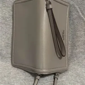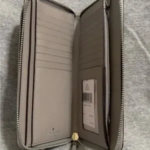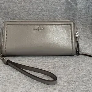 Elegant gray leather wristlet by Kate Spade. Perfect for versatile use.