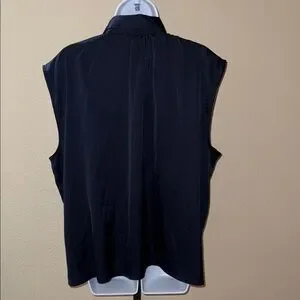 Banana Republic Dark Blue Satin Sleeveless Button Up Collared Blouse Women’s XL