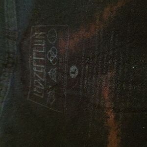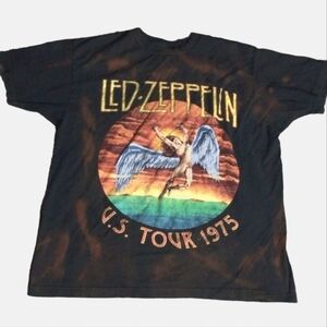 Unisex LED ZEPPELIN black short-sleeve distressed tie-dyed retro U.S. Tour 1975 concert teeshirt w/multi-colored graphic on front. Official licensed product! Good used condition (no flaws except the in-fabric label is a bit washed out per 4th picture). Back is blank except for tie-dye as per 3rd picture. 100% cotton; made in Mexico. Turn inside out to machine wash cold; do not bleach. Tumble dry low; do not iron the graphic.