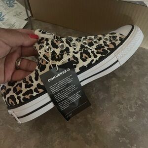 Unleash your wild side with these leopard print Converse sneakers. Stylish and bold for any outfit.