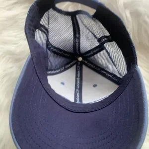 Stylish blue cap featuring multicolor stripes. Perfect for casual wear.