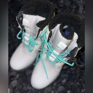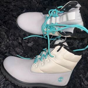 New (NWT)Timberland 6 inch puffer boots in light grey nubuck leather. You will not see anyone with these. Great fall find or gift for someone. These are sure to turn heads. Very stylish and unique Womens timberland boot. You wonβt be disappointed when these arrive.. π₯