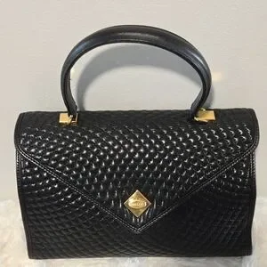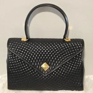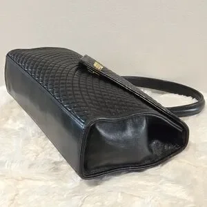 This elegant Bally Black Quilted Lambskin Shoulder Bag features striking Gold-Tone Hardware with a turn-lock closure and interior zipper pocket. Measures: 10.5"Wx7.25"Hx3.5"D with a 5.25" Handle Drop. EUC with no call outs.