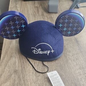 Navy cap with Disney+ logo. Features cross pattern on ears.
