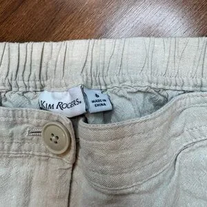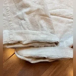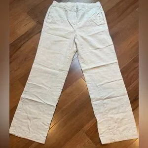 Classic cream linen pants with a relaxed fit. Ideal for casual wear.