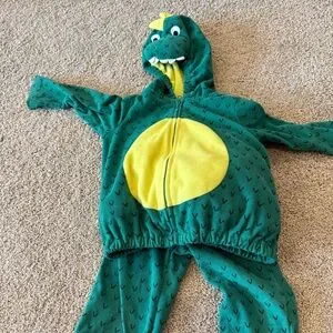 Charming dinosaur costume in green with a yellow accent. Ideal for fun dress-up. Size 24m. In EUC. Buy as is.
