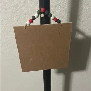 Decorative wooden sign with 'Free Palestine' text. Features a beaded hanger in red, green, black, and white.