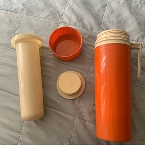 Vintage 1970s Thermos Orange Food Storage Container with Handle
