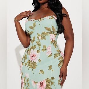 Elegant mint green midi dress with a beautiful floral print. Perfect for any occasion.