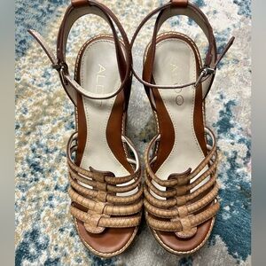 Aldo Tan Leather Strappy Platform Sandals 6.5 EUC great condition