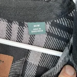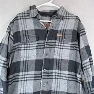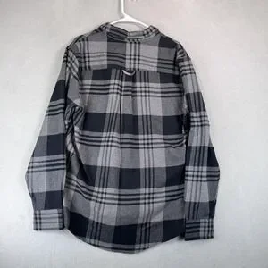Orvis Shirt Mens Medium Gray Black Plaid Flannel Button Up Heavyweight Pockets