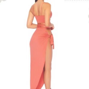 This stylish two piece pink dress is perfect for a day at the beach or poolside lounging. Its elegant design offers both comfort and style.