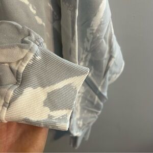 Stylish gray and white tie-dye sweatshirt with a cozy turtleneck design. Perfect for casual wear.