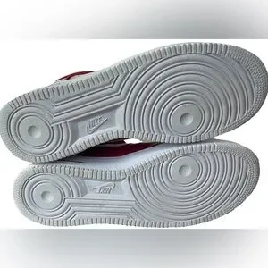 Nike Air Force 1 High Gym Red Perforated Men’s Size 12 (315121-606). Released 2/10/2016. Classic red and white retro basketball sneakers with ankle strap and Nike Air cushioning. Pre-owned, excellent condition with clean soles and minor toe creasing. Rare 2016 release — must-have for sneakerheads, collectors, and streetwear fans.