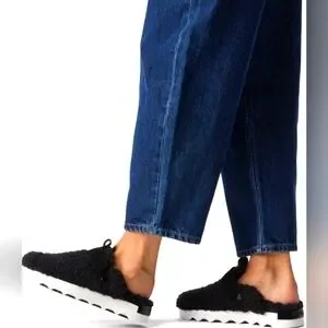 Size 9 - SOREL Viibe Black Faux Shearling Fuzzy Slip-On Shoes